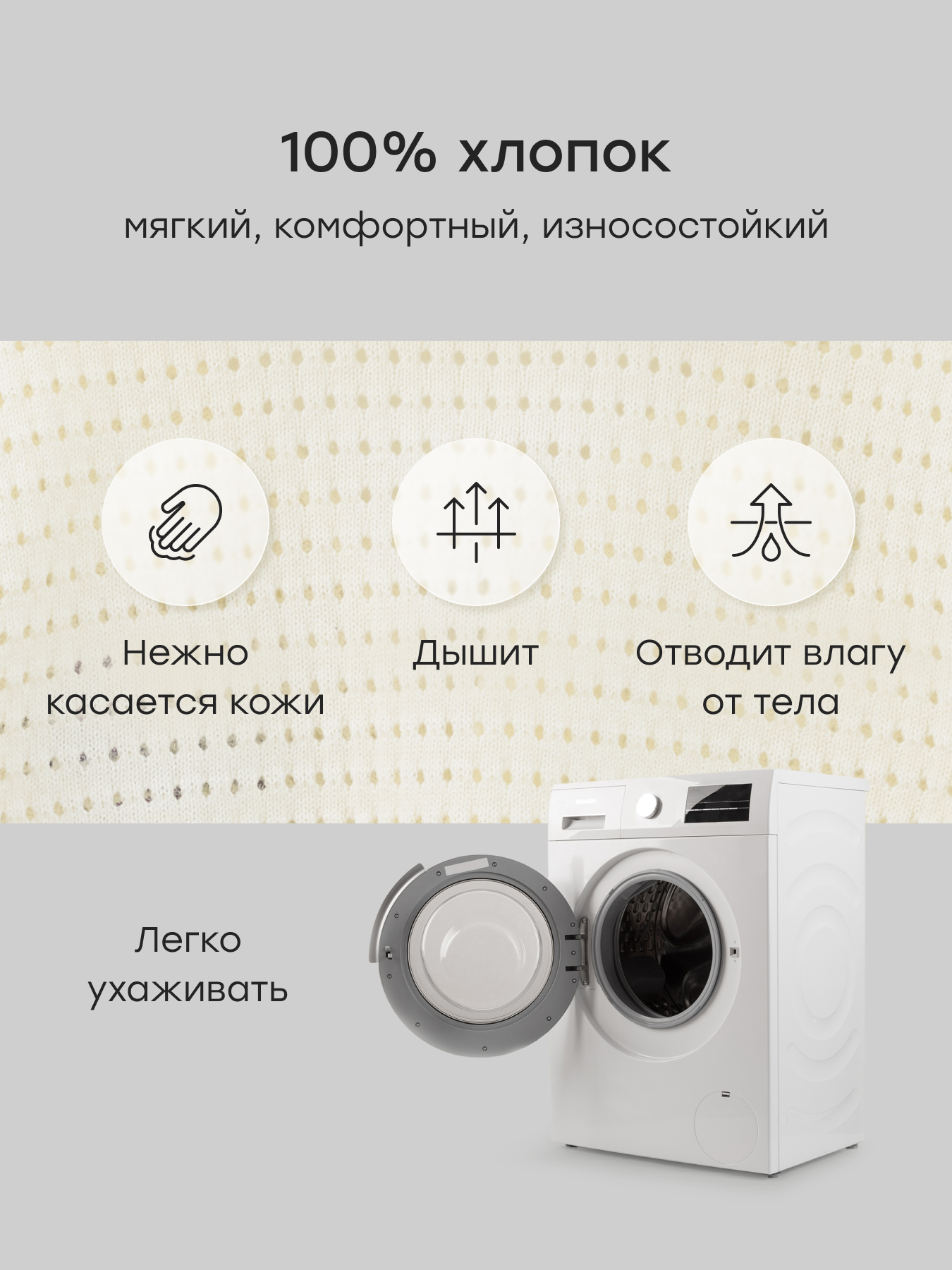 Особенности • Натуральный хлопок 100% — обеспечивает комфорт и подходит для чувствительной кожи