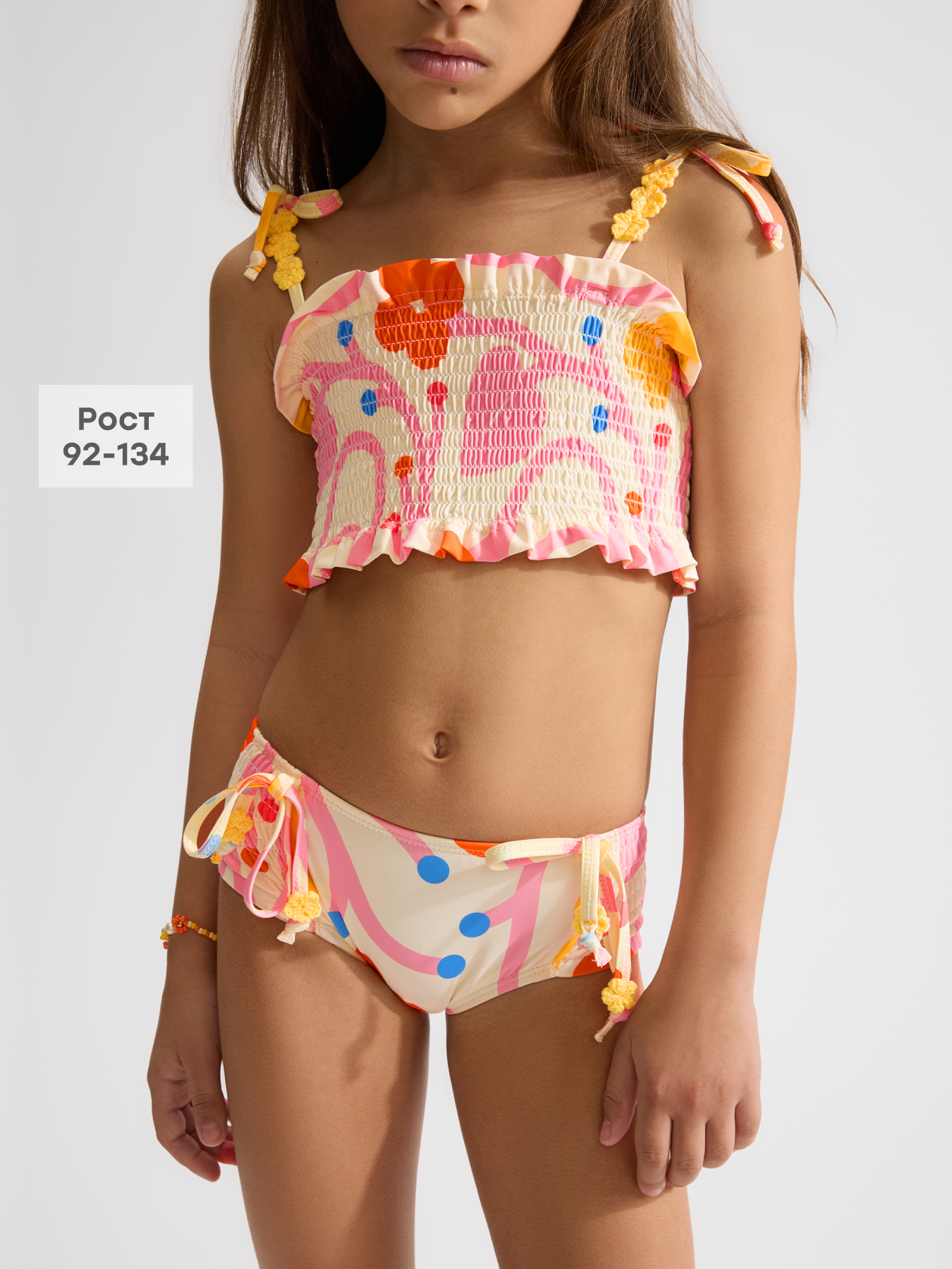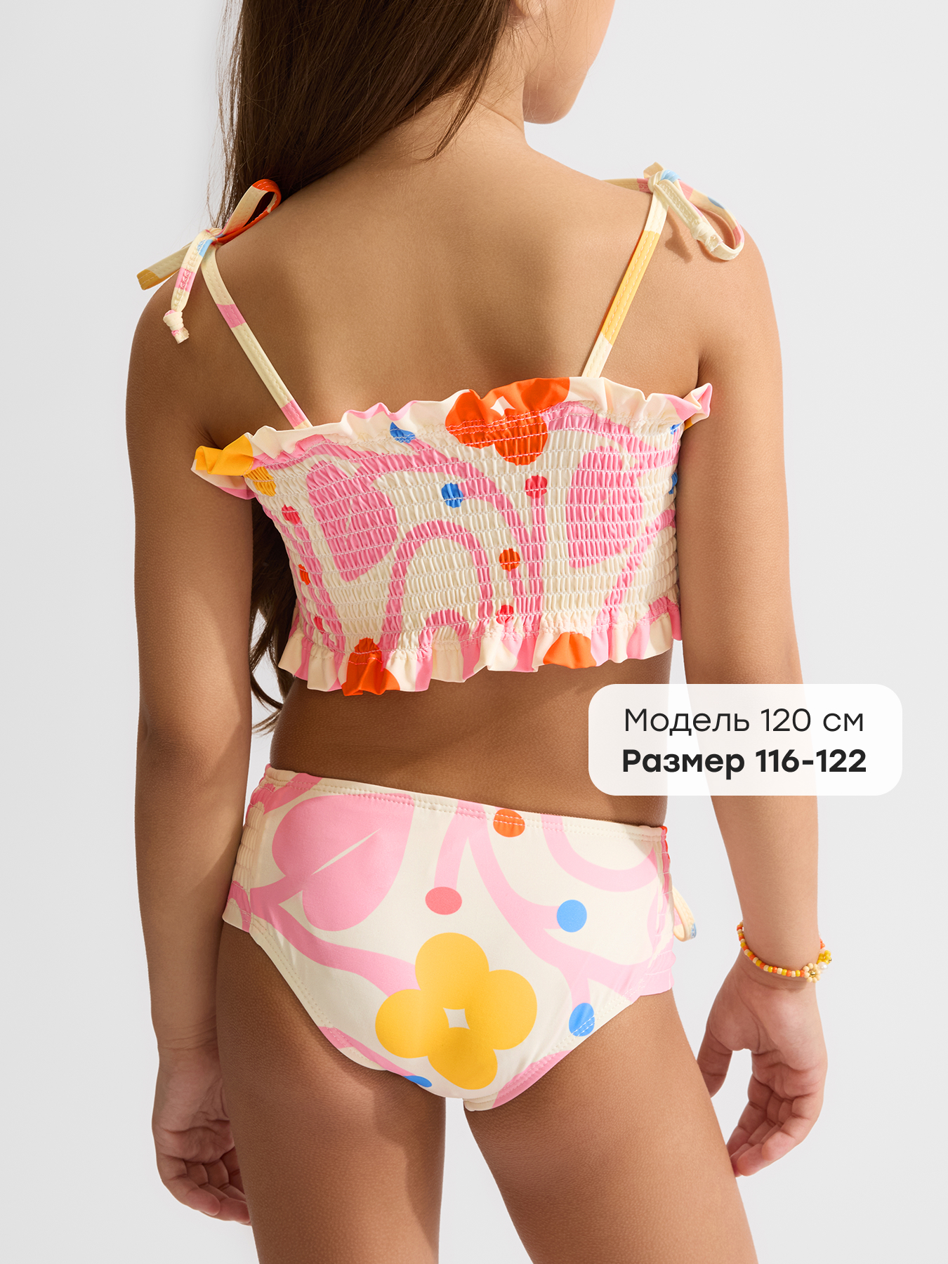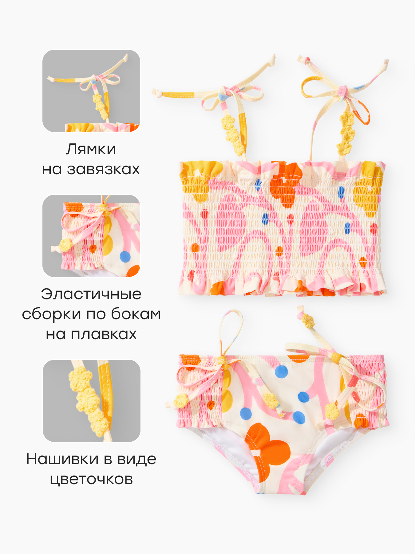 • Декор — яркий принт и аккуратный декор на лямках лифа