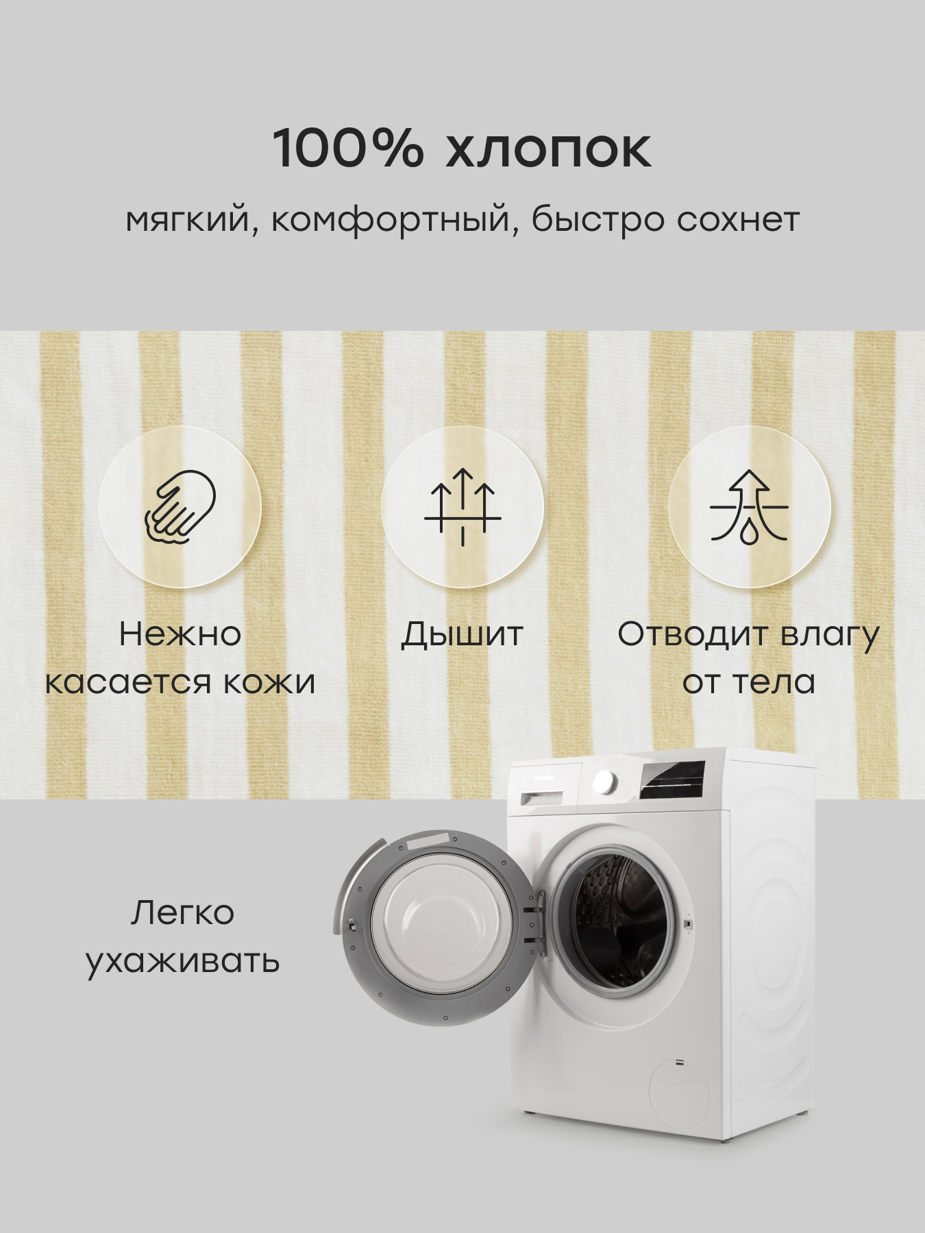 • Натуральный материал — 100% хлопок, мягкий и дышащий