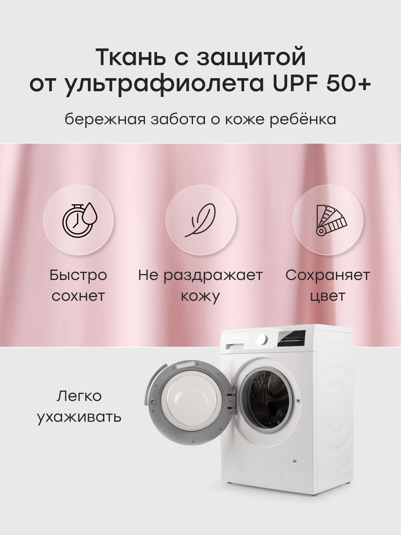• Практичность — ткань быстро сохнет и удобна в уходе
