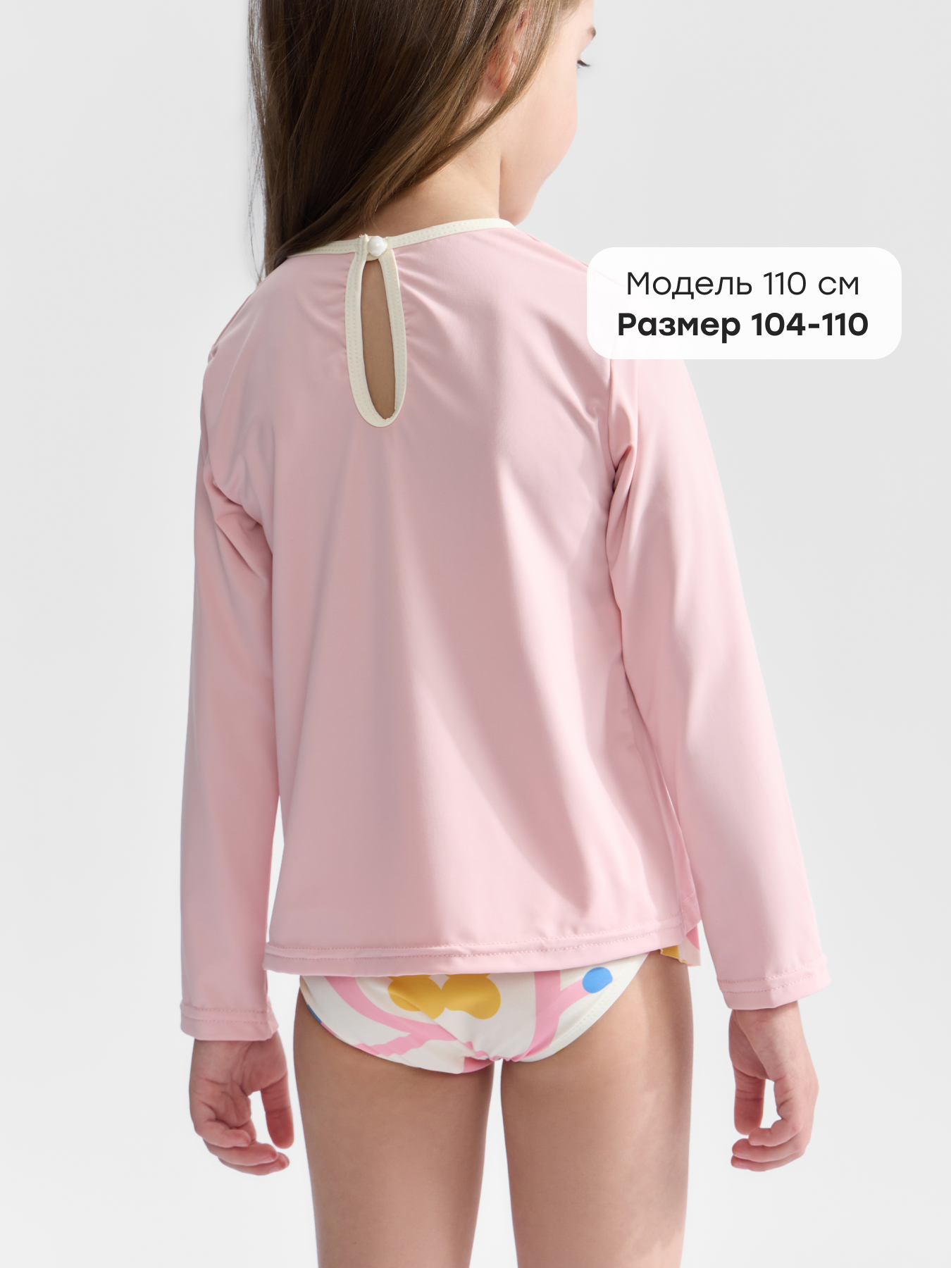 • Конструкция — раздельный купальный костюм, состоящий из футболки для плавания с длинным рукавом и плавок