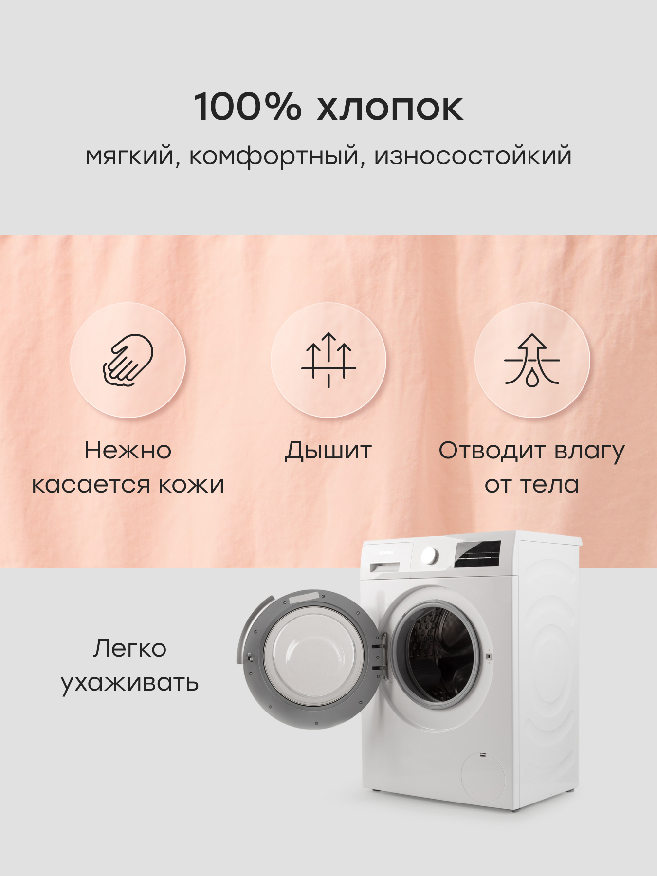 • Натуральный хлопок 100% — позволяет коже дышать, пропускает воздух и помогает поддерживать комфорт в теплую погоду