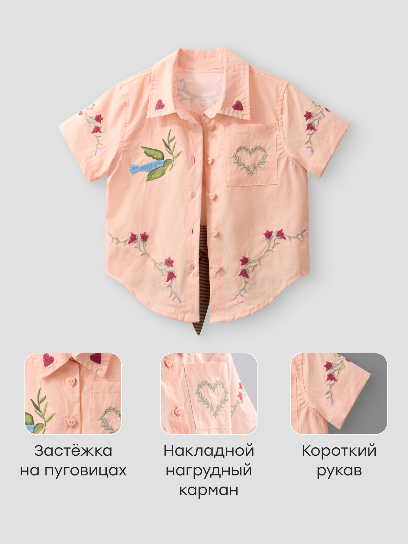 • Застёжка на пуговицы в виде сердечек — облегчает переодевание и добавляет декоративный элемент